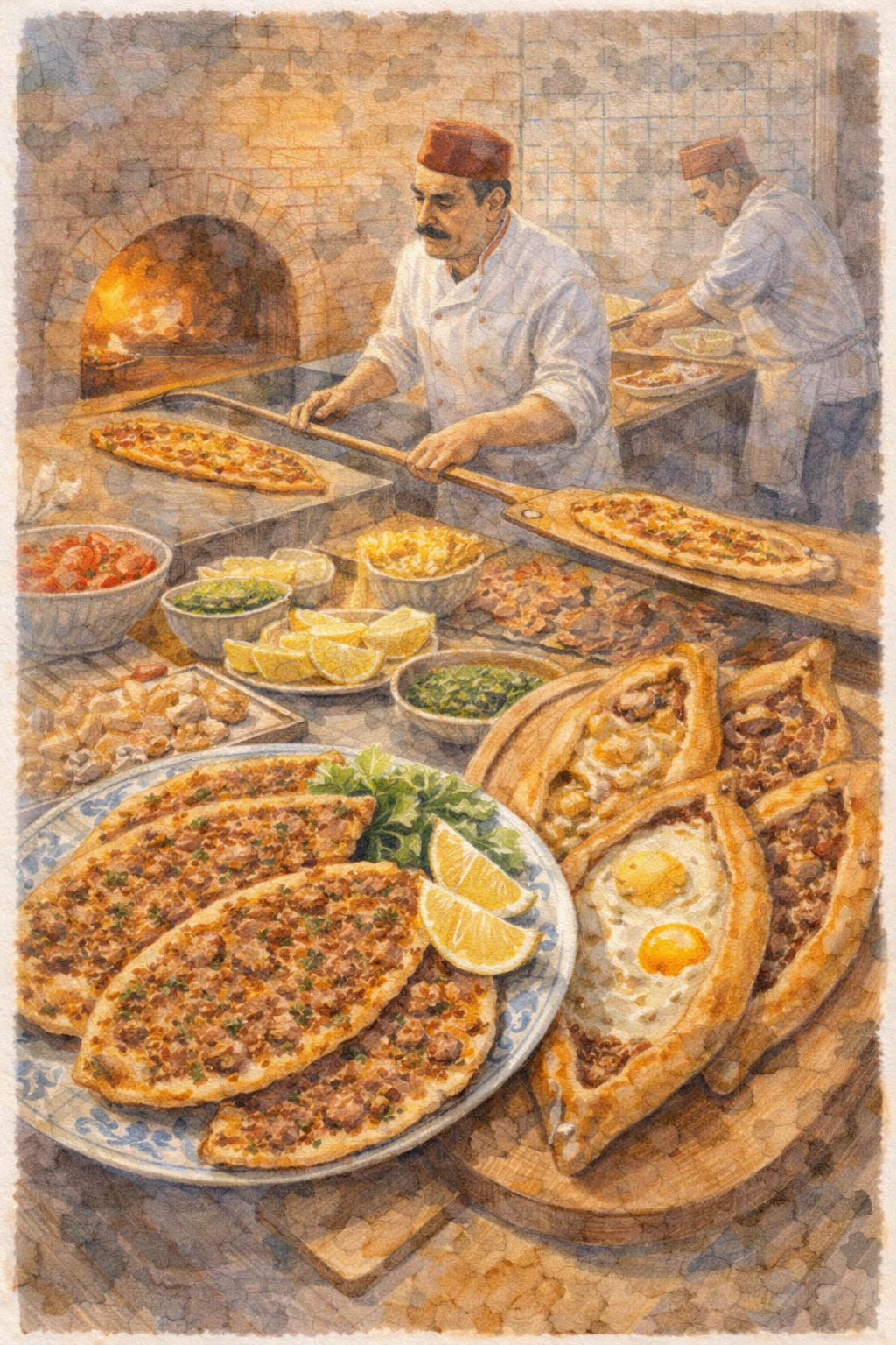 - Lahmacun & Pide – Thin-crust flatbreads topped with seasoned meat, vegetables, and herbs.